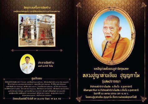 พบกับความยิ่งใหญ่ในการจัดสร้าง...เหรียญหลวงปู่เขียน ปุญญกาโม รุ่น"สมปรารถนา" ได้รับอนุญาติจัดสร้างจากหลวงปู่เขียนเพื่อนำรายได้หลังหักค่าใช้จ่าย สมทบทุนกองทุนบูรณะสำนักสงฆ์ป่าช้าบ้านโพนสิม อ.เขื่องใน จ.อุบลราชธานี ....ช่วงเพียงข้ามคืน ...รายการที่1 เหรียญเนื้อทองคำจัดสร้างจำนวน59เหรียญ และรายการที่2 เหรียญเนื้อเงินหน้าทองคำ หมดลงอย่างรวดเร็วทั้งที่ยังไม่ได้จัดพิมพ์โบว์ชัวร์หรือใบสั่งจอง สนใจติดต่อทำบูญบูชา ตามศูนย์จองชั้นนำทั่วไป หรือติดต่อที่ ร้านมลเชือกคาด โทร. 085-8798569 ภายในวันที่ 25 เมษายน 2559